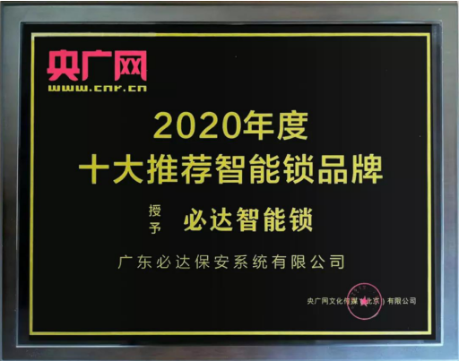 廣東必達(dá)保安系統(tǒng)有限公司不僅自2008年起至今連續(xù)十二年獲得“高新技術(shù)企業(yè)”稱(chēng)號(hào),以及央廣網(wǎng) “2020年度十大推薦智能鎖品牌”大獎(jiǎng)。